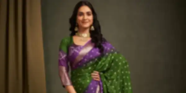 Okay, now let’s talk comfort-core. Printed Bandhani is the chill sibling in the saree fam. You get the desi aesthetic without the full tie-dye process. Perfect for casual rituals, temple visits, or those festive days when you want to look put together but still want to nap after lunch.